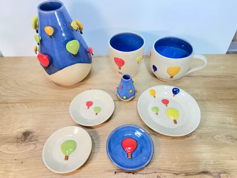 They are then fired to 900°C before being glazed with a selection of hand made glazes before being fired to stoneware (1220°C) temperature.